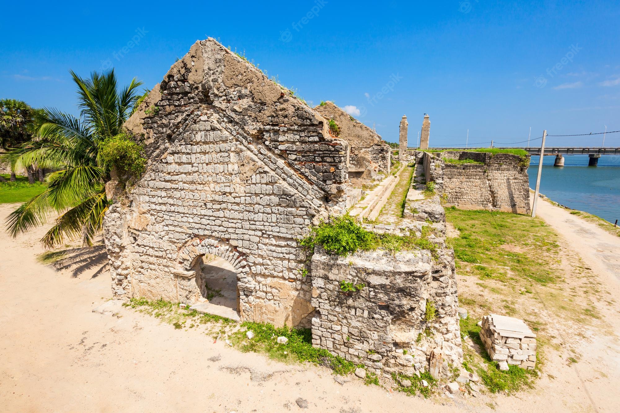 Linked to the mainland by a causeway, Mannar feels fairly remote, perhaps because the original bridge was blown up in a bomb attack in the 1990s and it was not until 2010 that a permanent replacement structure was completed. Mannar town, located in the southeastern corner of the island, is the main settlement. Its main attraction is a Portuguese Fort, near the town's entrance, which was later reinforced by the Dutch. Catholicism is prevalent in this area and the St Sebastian Church, with a slightly Moorish appearance, is especially revered by the community. Mannar is also famous for its baobab trees, believed to have been brought to Sri Lanka by the Arabs. There are some huge specimens, including one located to the north of town. It is said to have been planted in the 15th century. At the island's western end is Talaimannar, from where ferries formerly shuttled between Sri Lanka and India. Towards the west of Talaimannar is Adam's Bridge, a series of sandbanks that extend all the way to India.